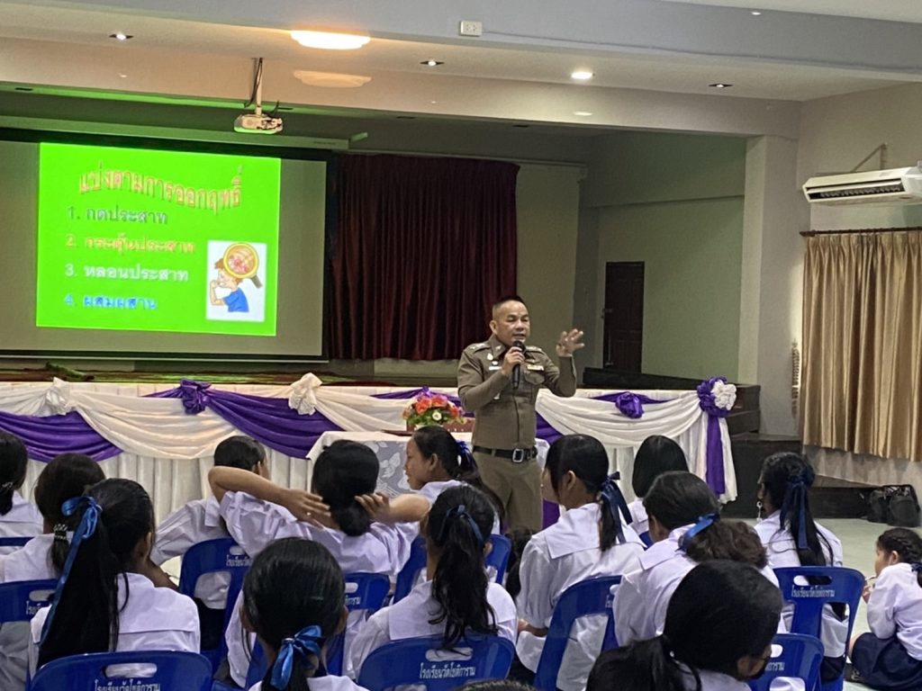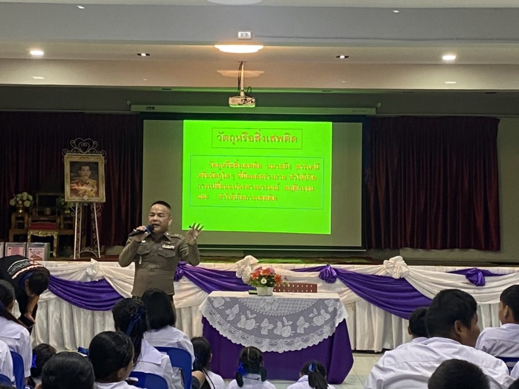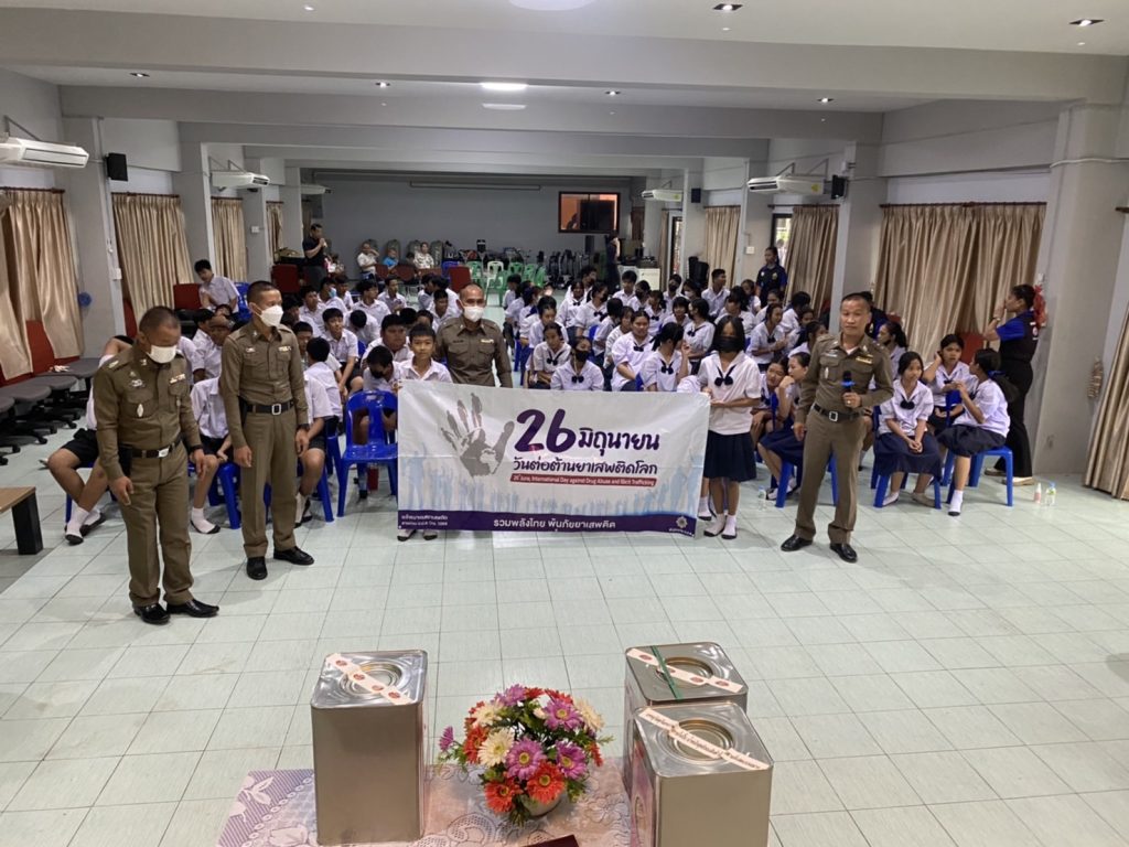พร้อมเจ้าหน้าที่ชุดตำรวจชุมชนสัมพันธ์ร่วมกิจกรรมวันต่อต้านยาเสพติดโลกและให้ความรู้เกี่ยวกับยาเสพติดและร่วมเดินรณรงค์ เนื่องในวันต่อต้านยาเสพติดโลก