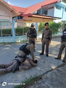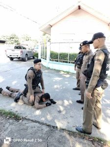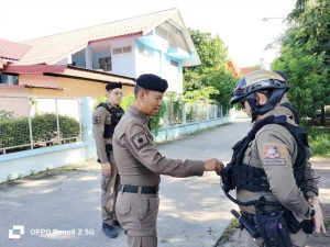 ปล่อยแถวและฝึกจับกุมควบคุมตัวผู้ต้องหาสายตรวจ สภ.บางศรีเมืองออกปฏิบัติหน้าที่แก่ประชาชนชาวบางศรีเมือง