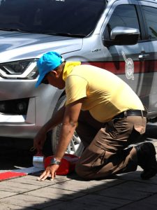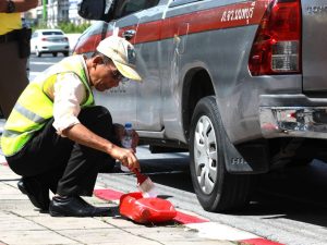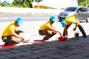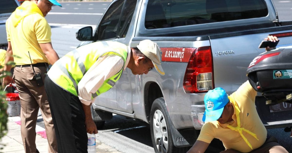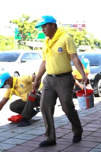 ว.4 จราจรจิตอาสาและหมวดบำรุงทางหลวงชนบทราชพฤกษ์ ทำกิจกรรมทาสีตีเส้นขอบทางห้ามจอดรถ(ขาวแดง)