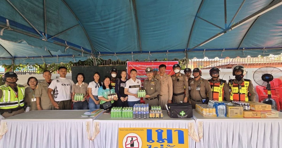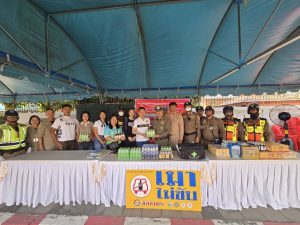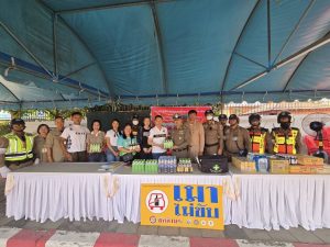 ชุดจิตอาสา สภ.บางศรีเมือง เทศบาลบางรักน้อย รับมอบเครื่องดื่มจาก